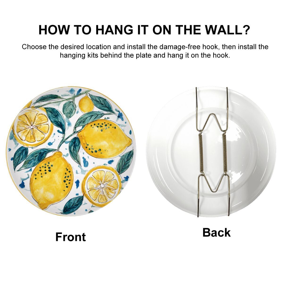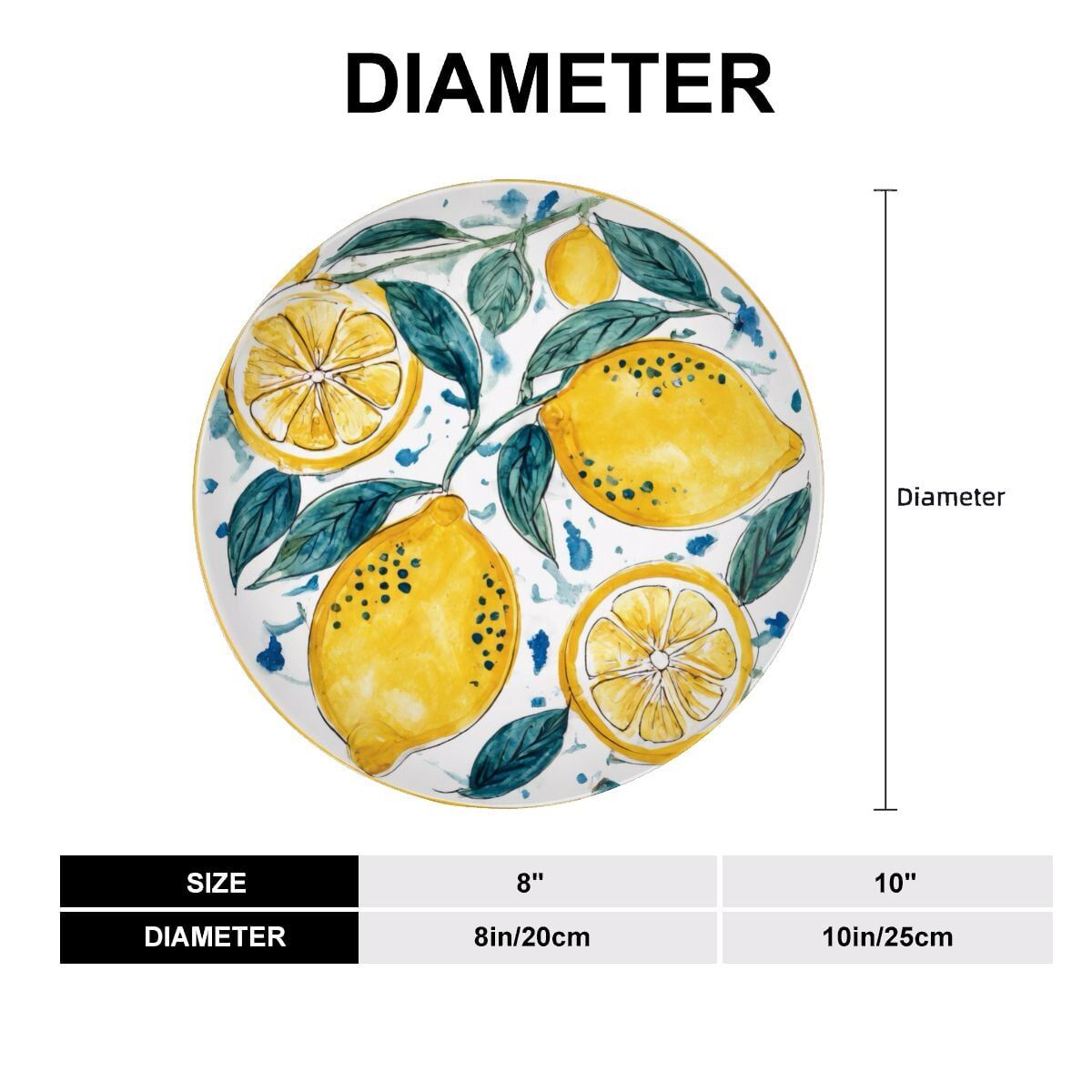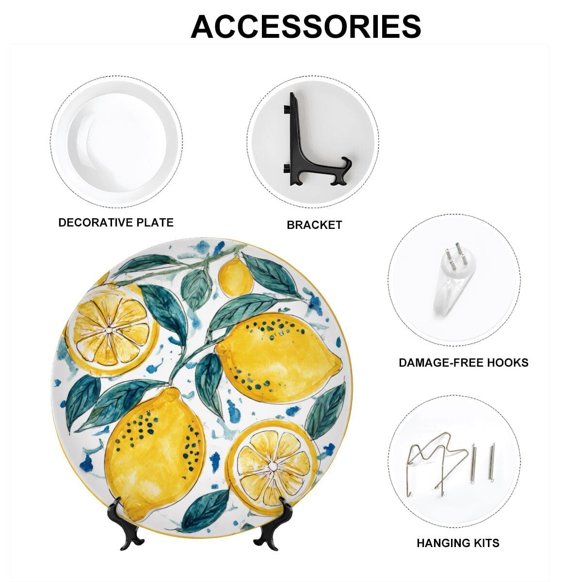 Ceramic Kitchen Display Plate: Lemon Fruit & Splatter Art Pattern (With Stand)