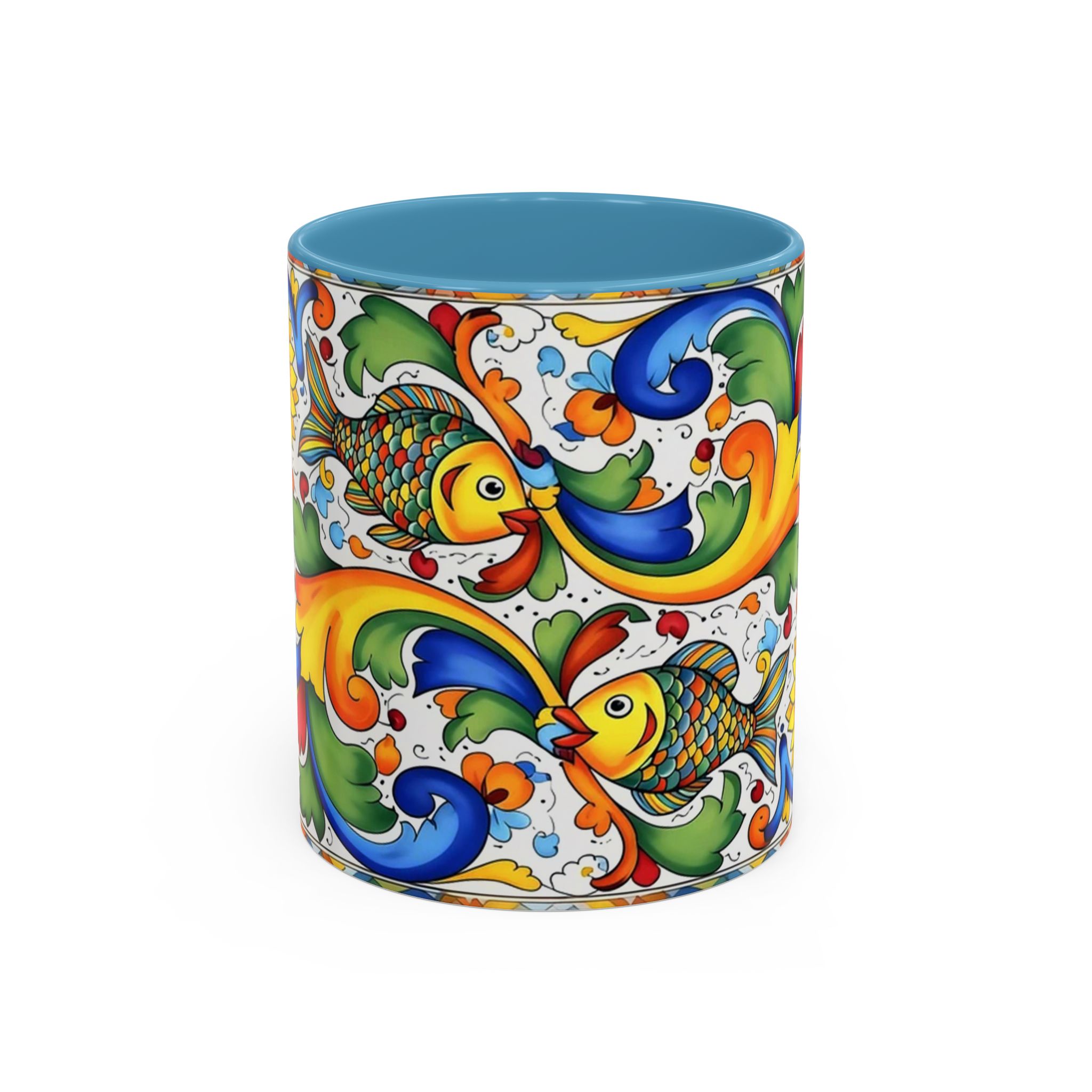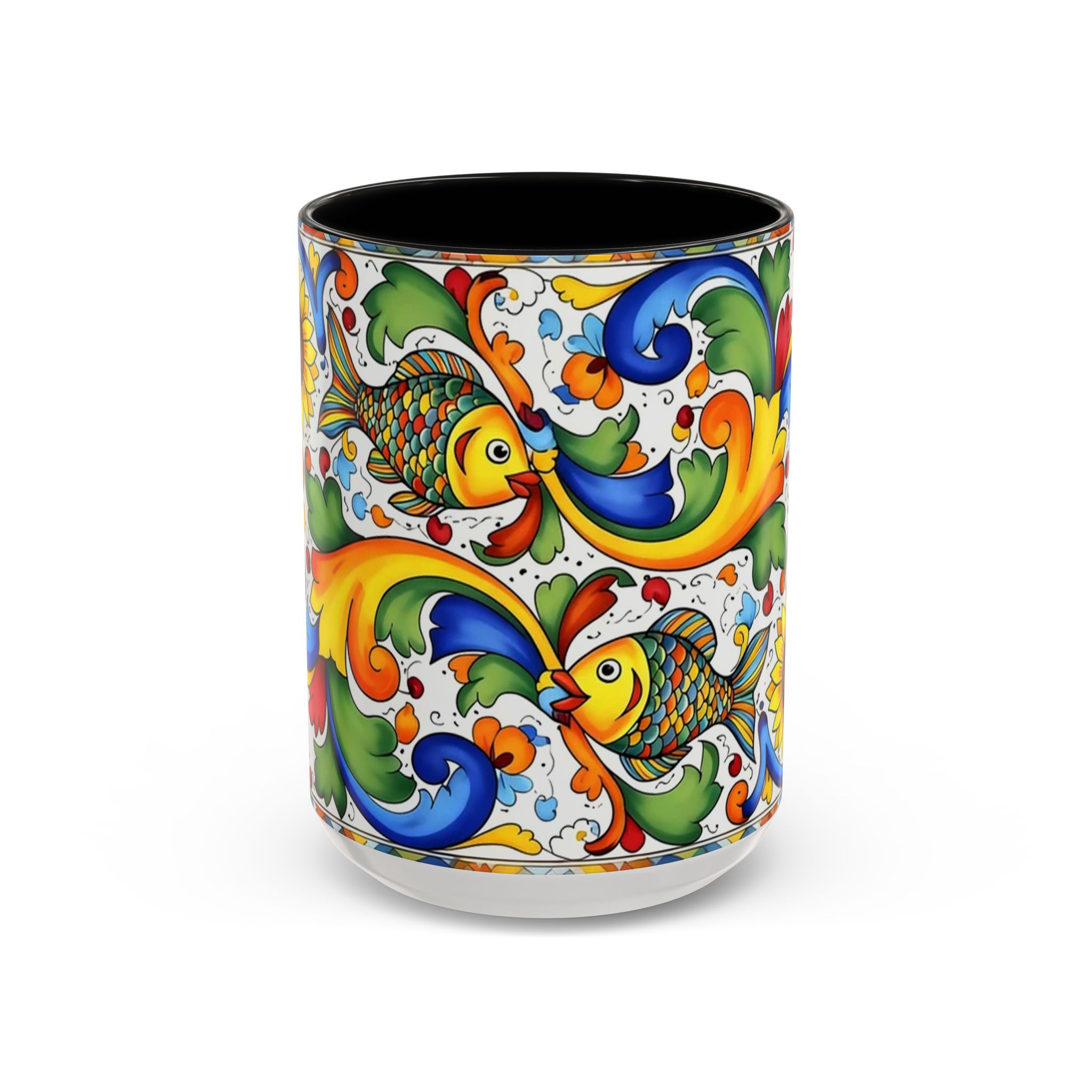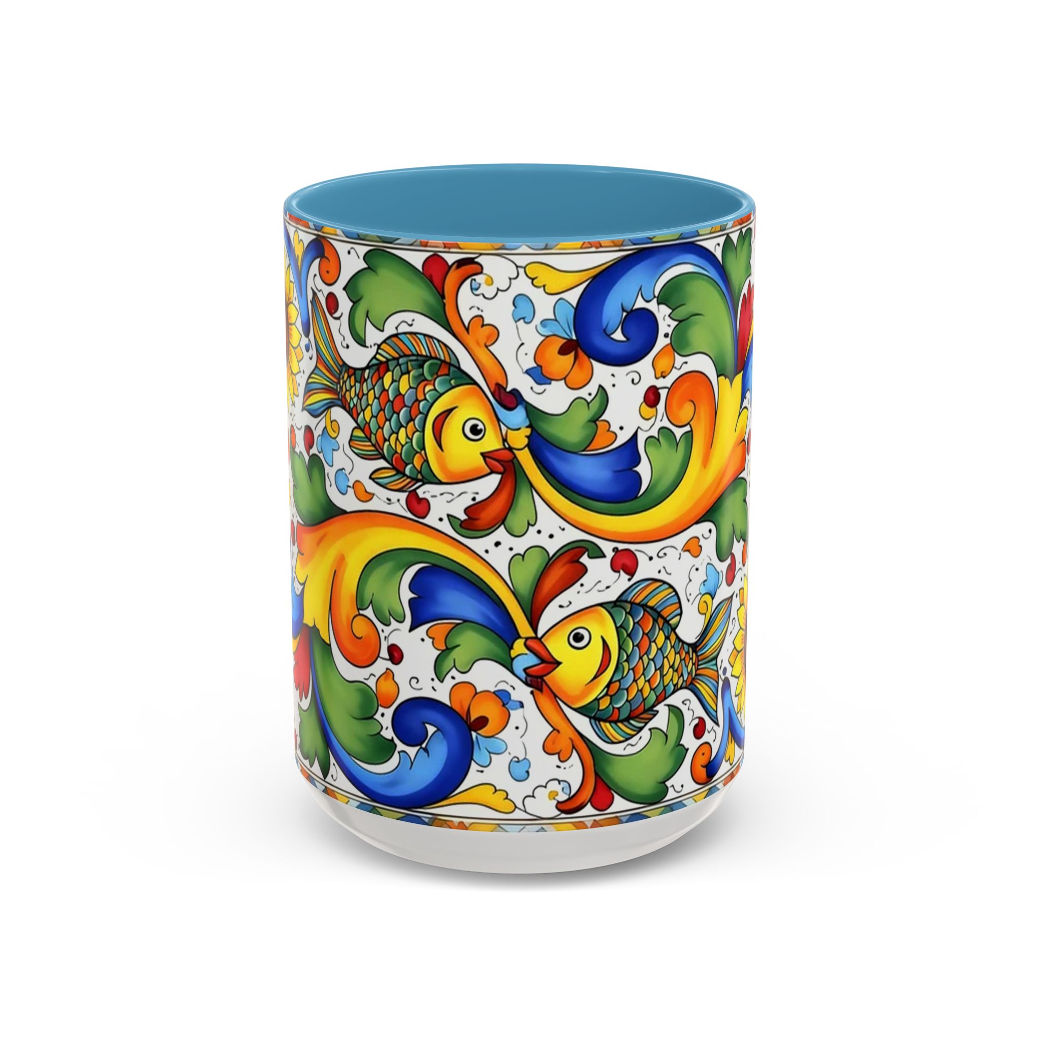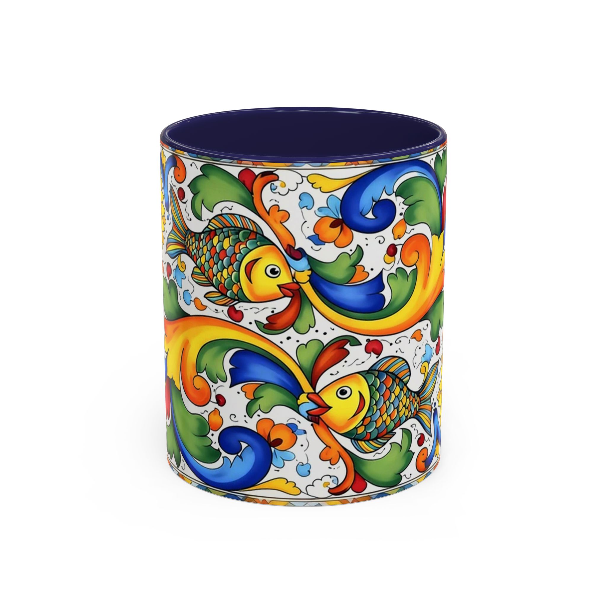 Colorful Italian Majolica Style Fish Pattern Mug | Ceramic Accent Coffee Mug