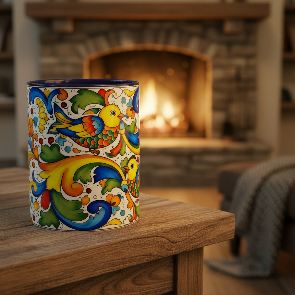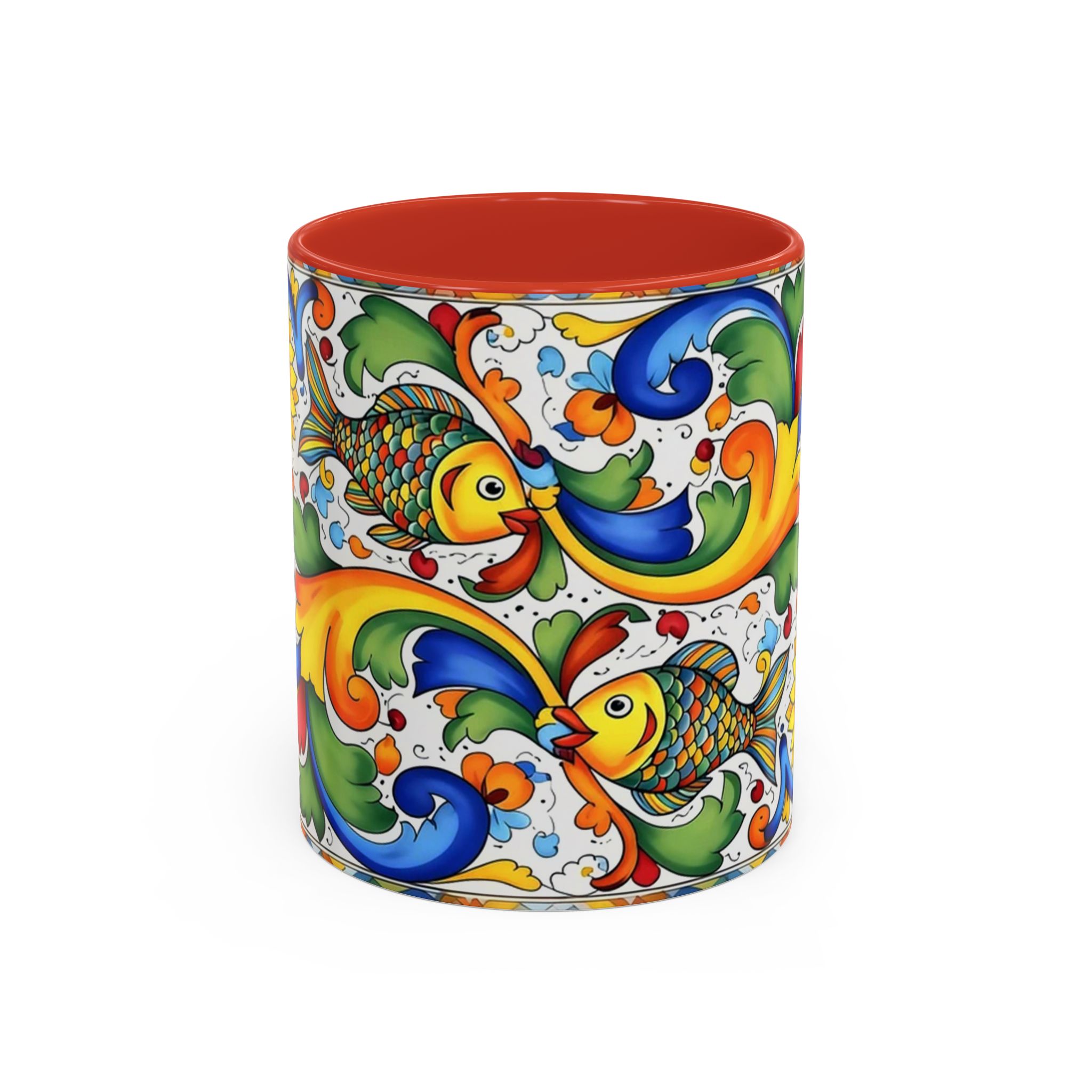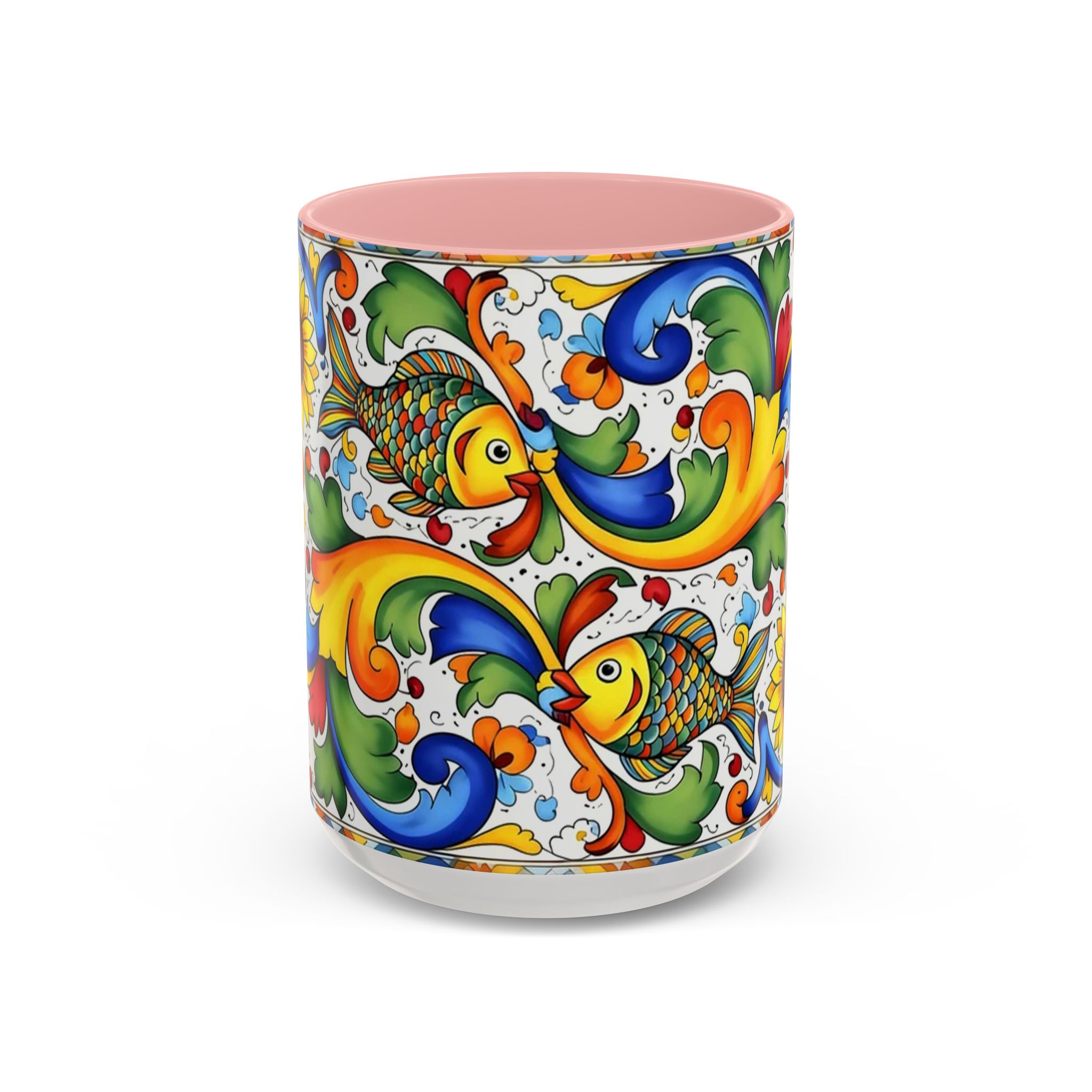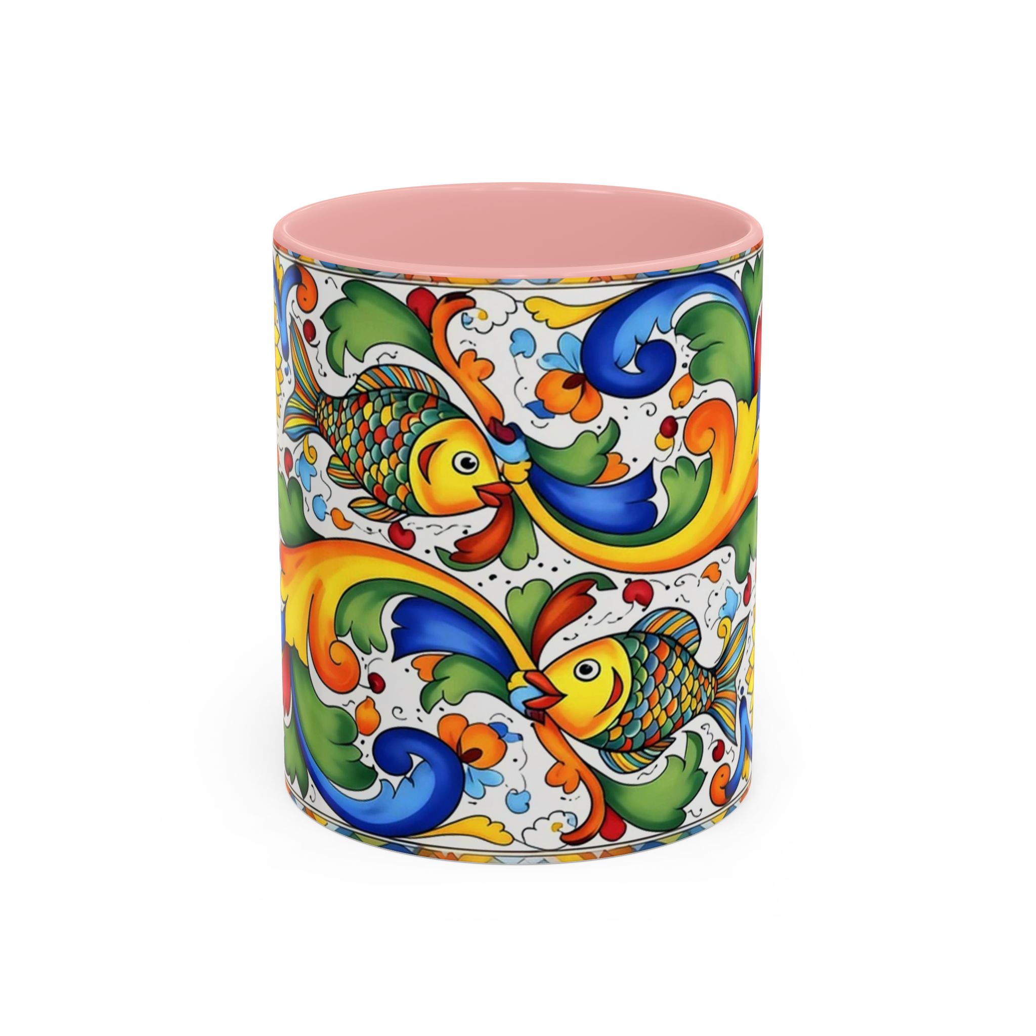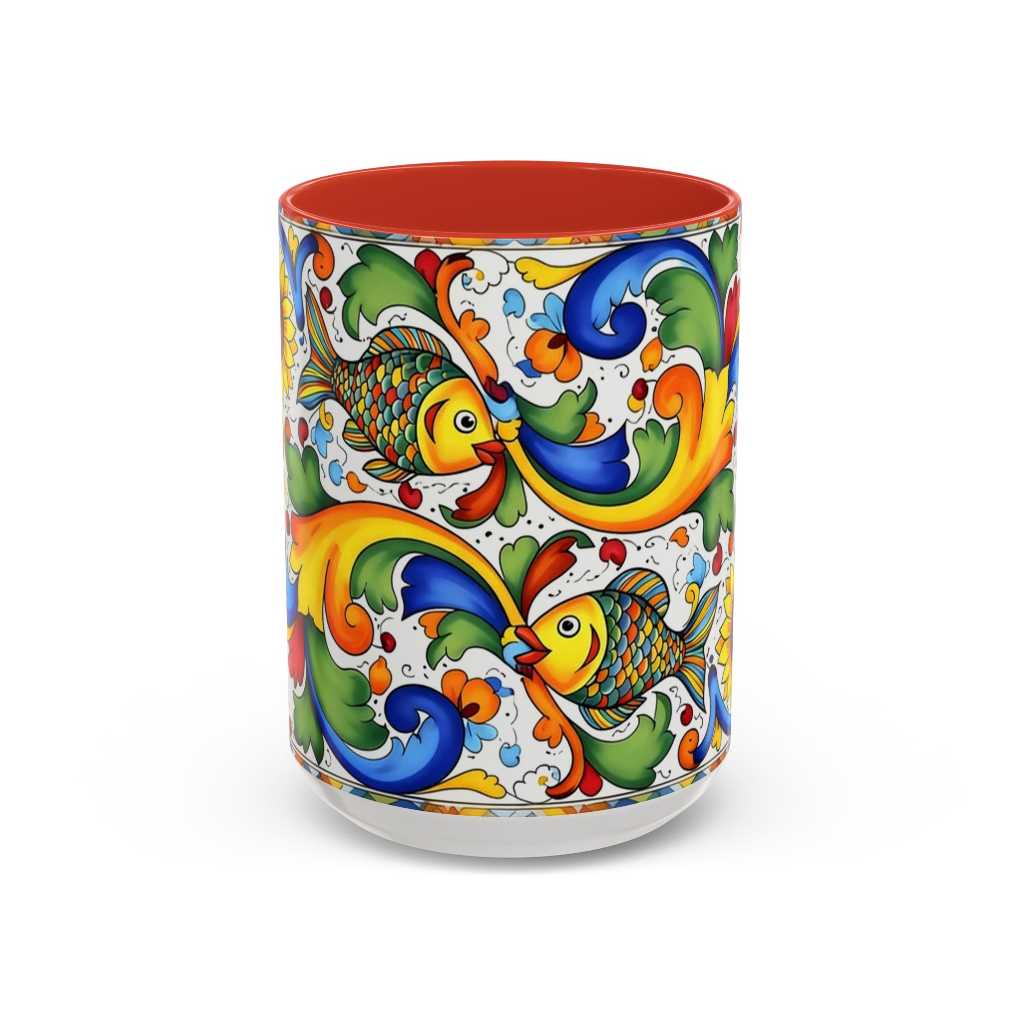 Colorful Italian Majolica Style Fish Pattern Mug | Ceramic Accent Coffee Mug