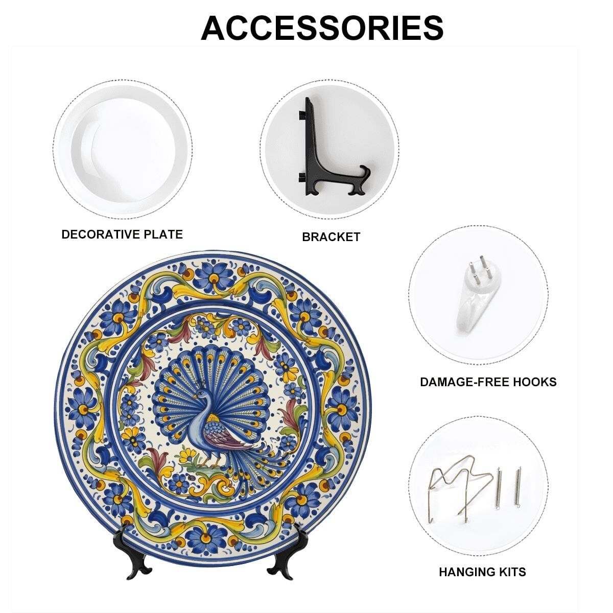 Made of durable ceramic, the pattern is beautiful and unique, can be personalized, the color is clear, and the appearance is exquisite. Sturdy, versatile, and very stylish, it is safe for everyone to use. It comes with a display stand and hook, so it can be displayed in a china cabinet, shelf or side table. It can also be hung on the wall. It looks very elegant and artistic.
