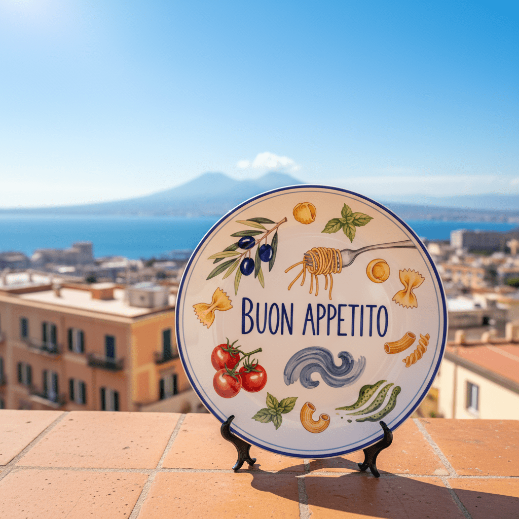 Italian Cuisine Inspired Decorative Plate with Display Stand