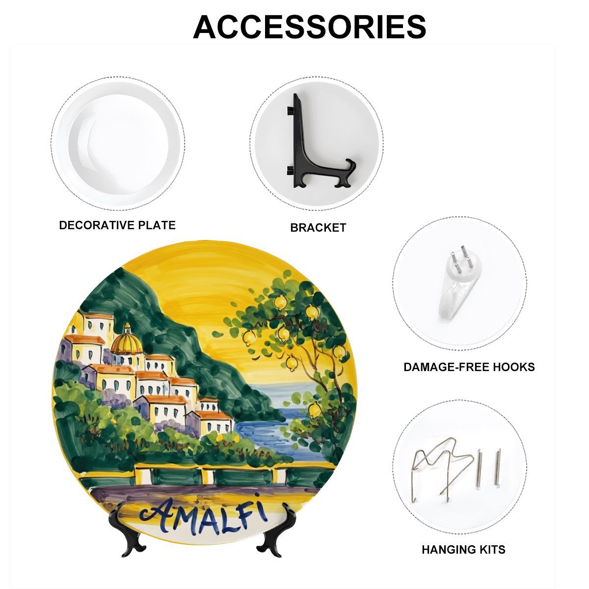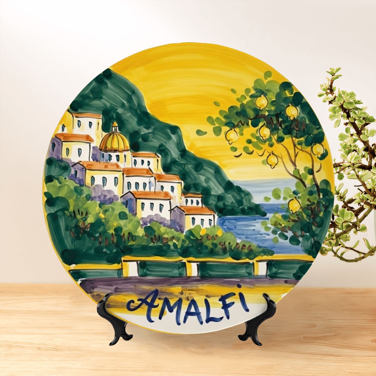 Italian Landscape Decorative Plate Inspired by Amalfi Coast Coastal Town Scenery Including Stand