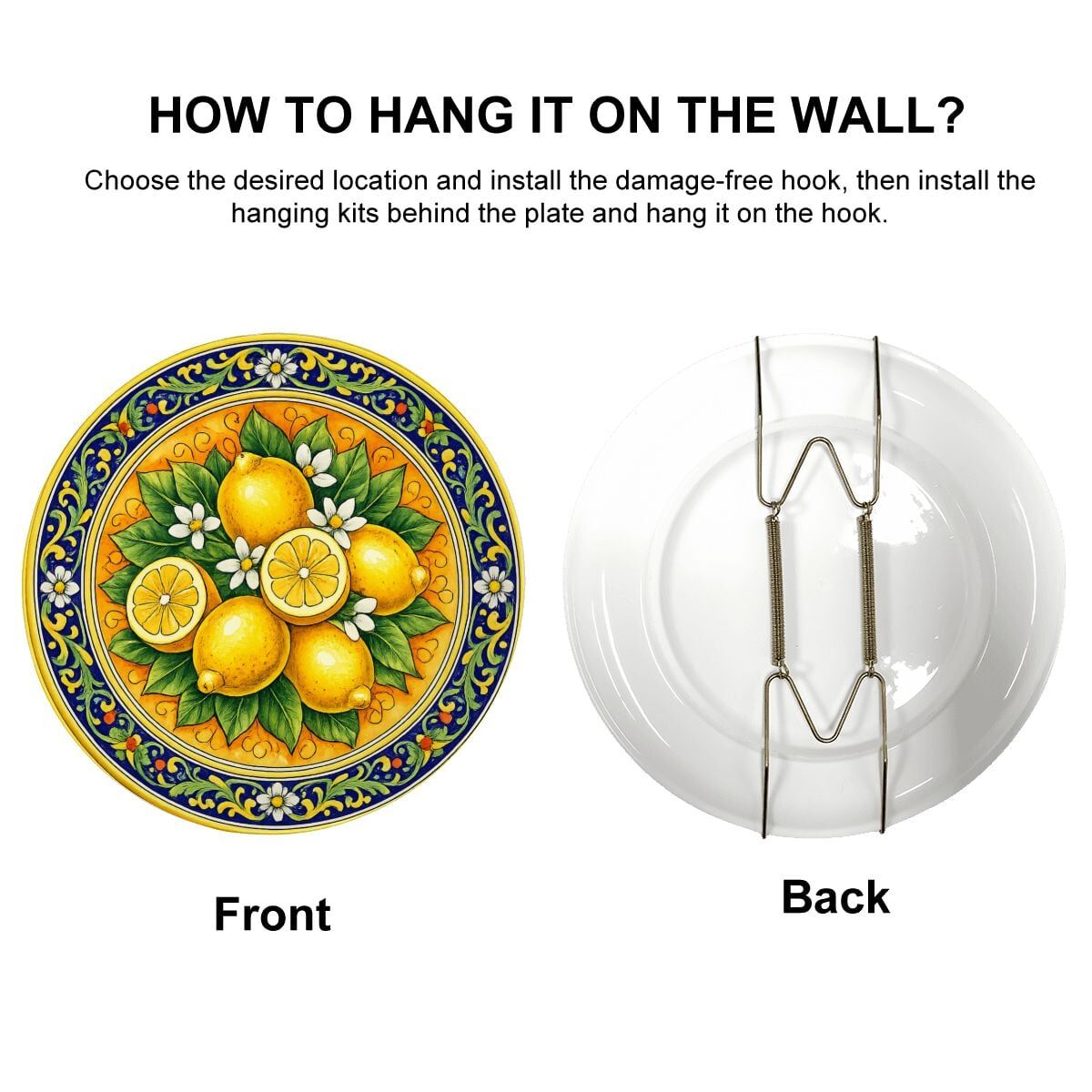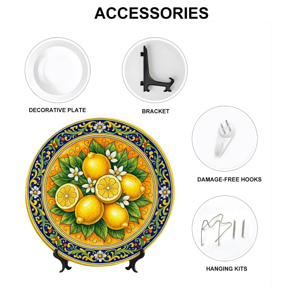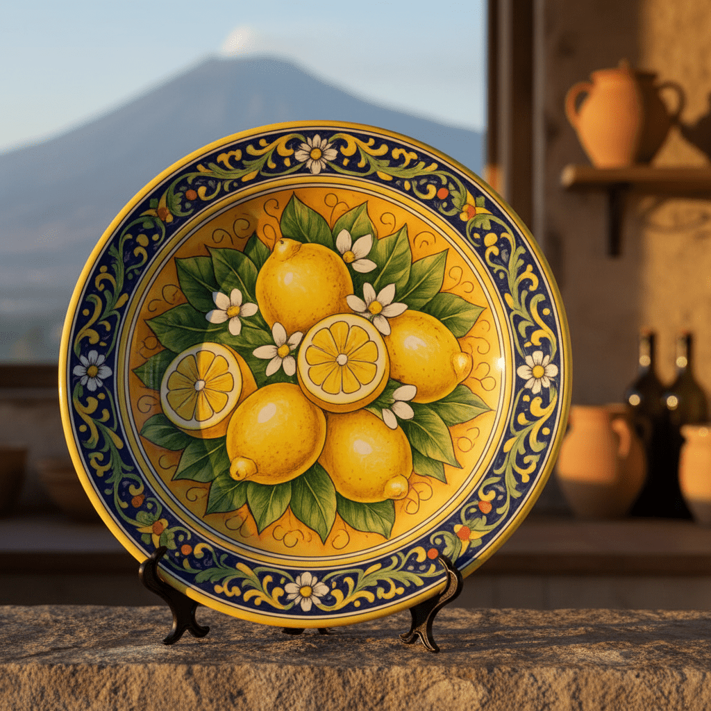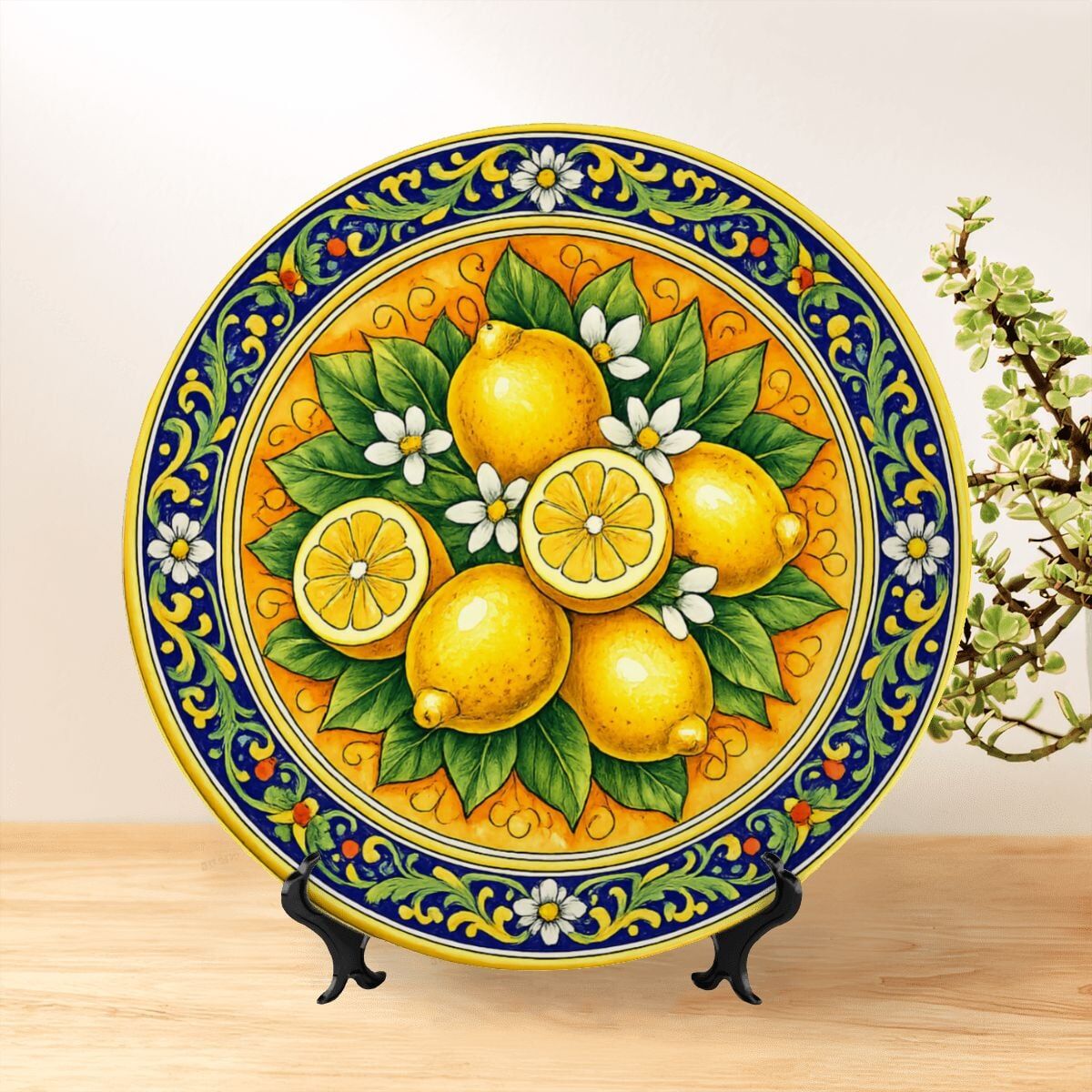 Mediterranean Inspired Citrus Plate, Sicilian Lemon Art, Decorative Ceramic Dish including Stand