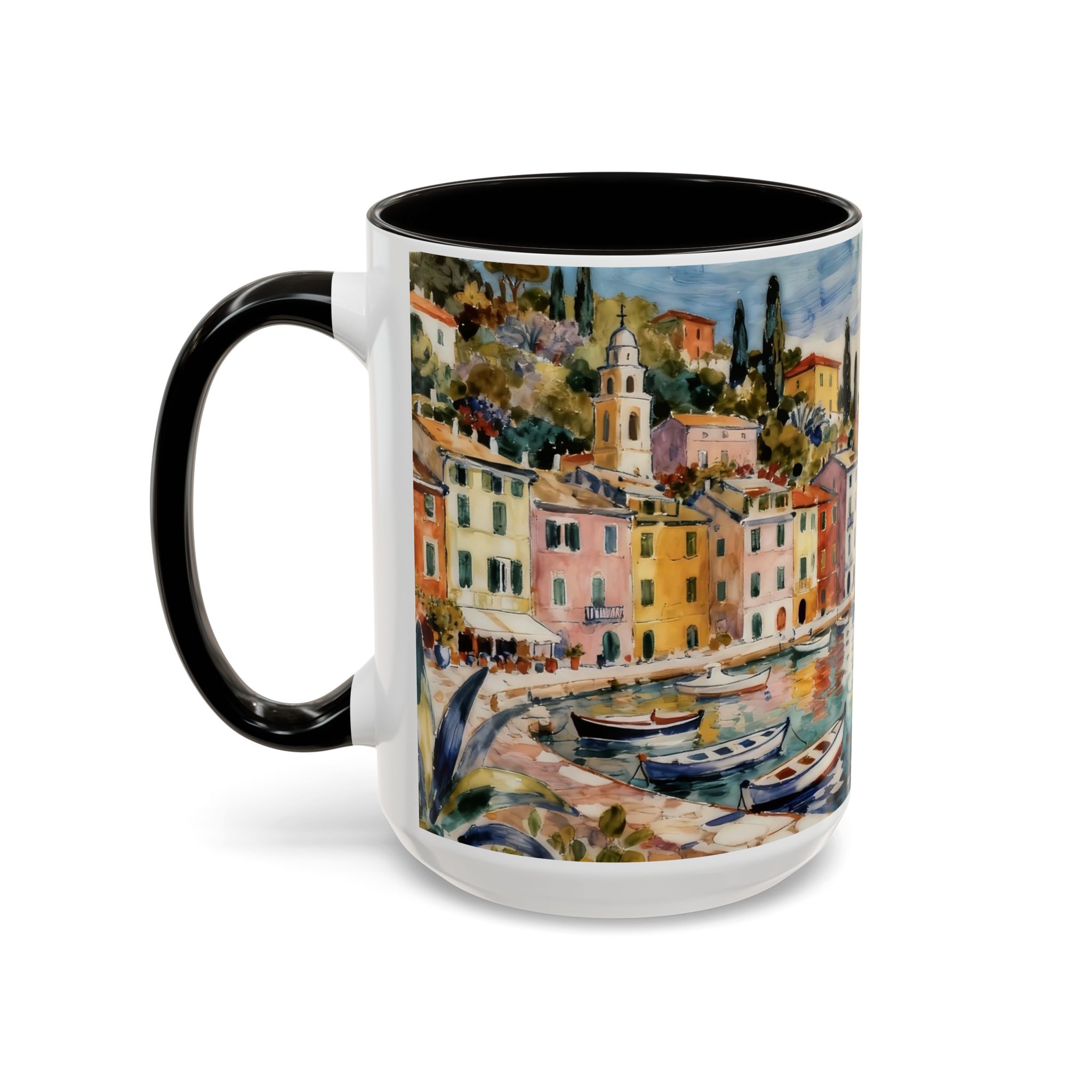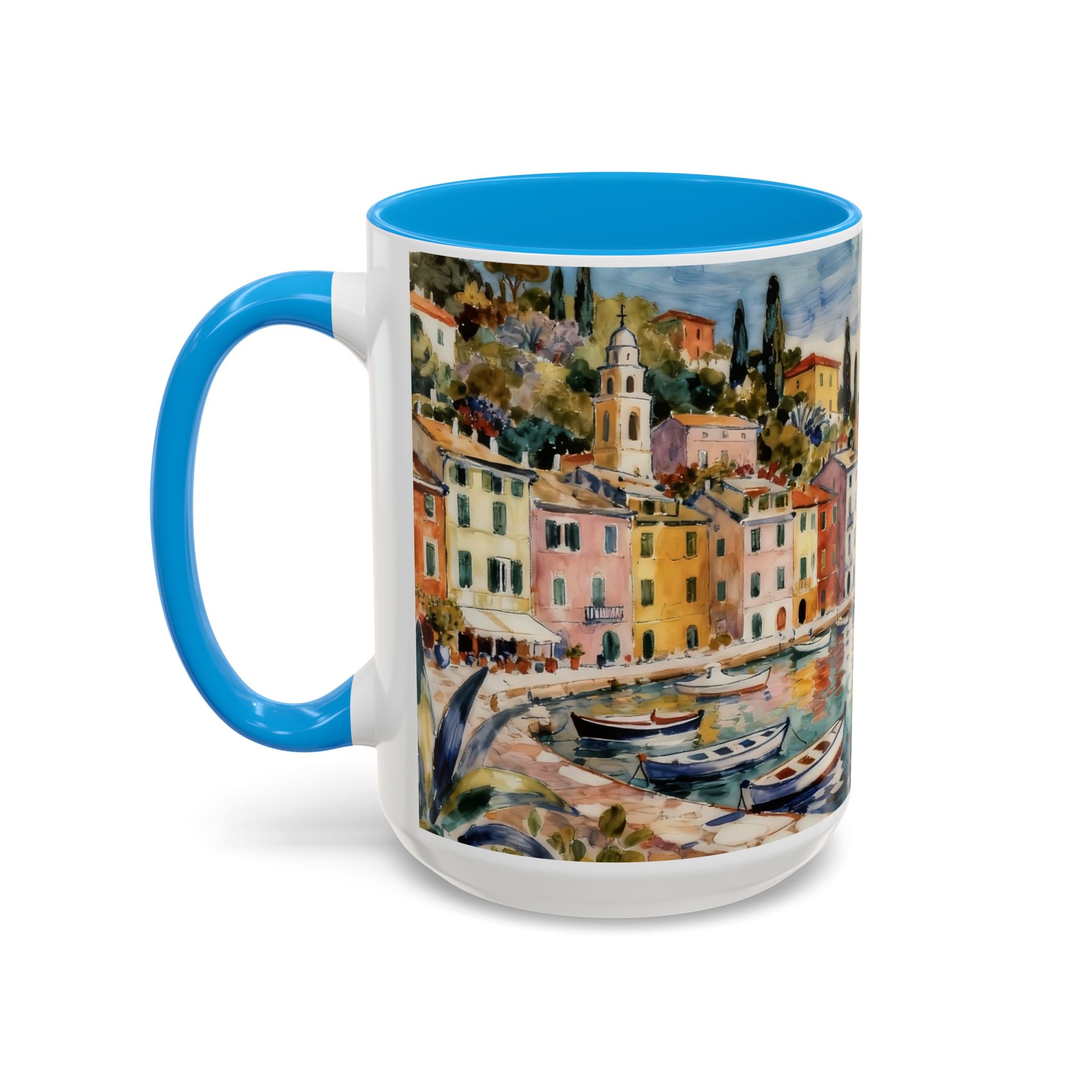 Portofino Italy Ceramic 15 oz Mug Hand-Painted Effect Mediterranean Design