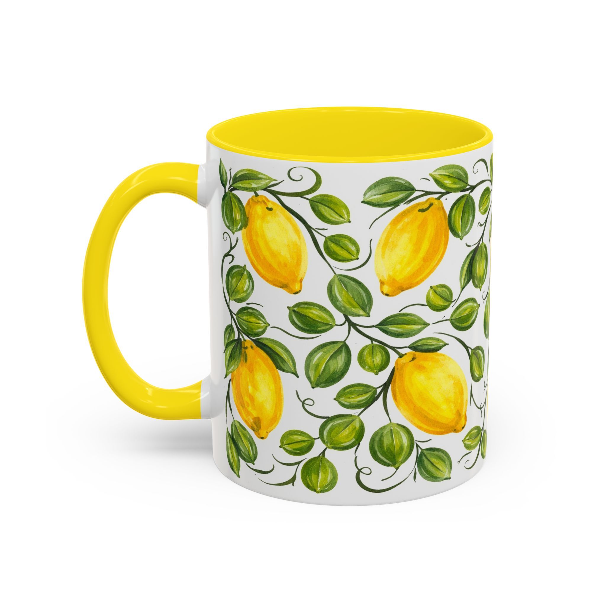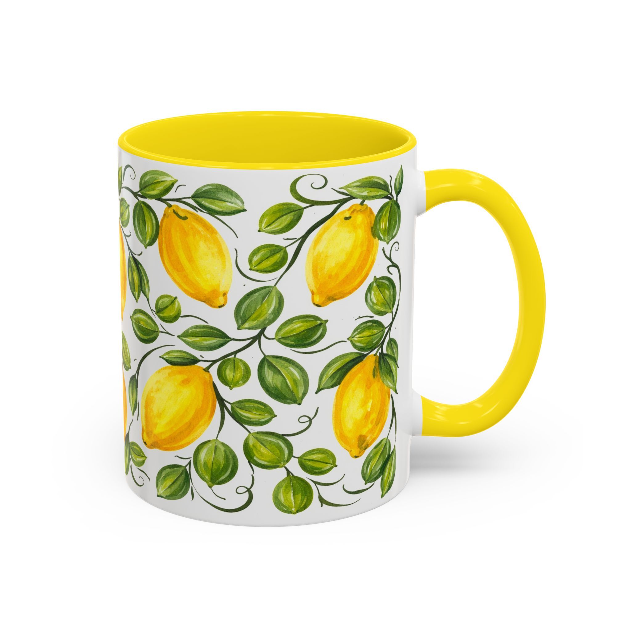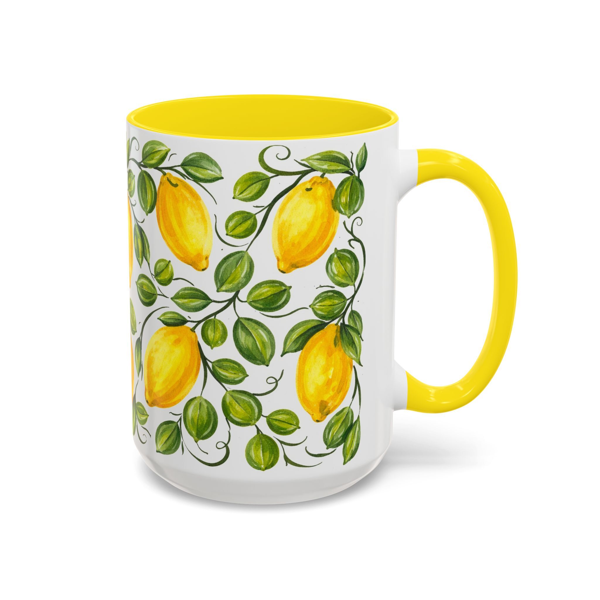 Sorrento Amalfi Lemon Ceramic Mug 11oz 15oz, Yellow Interior | Italian Style