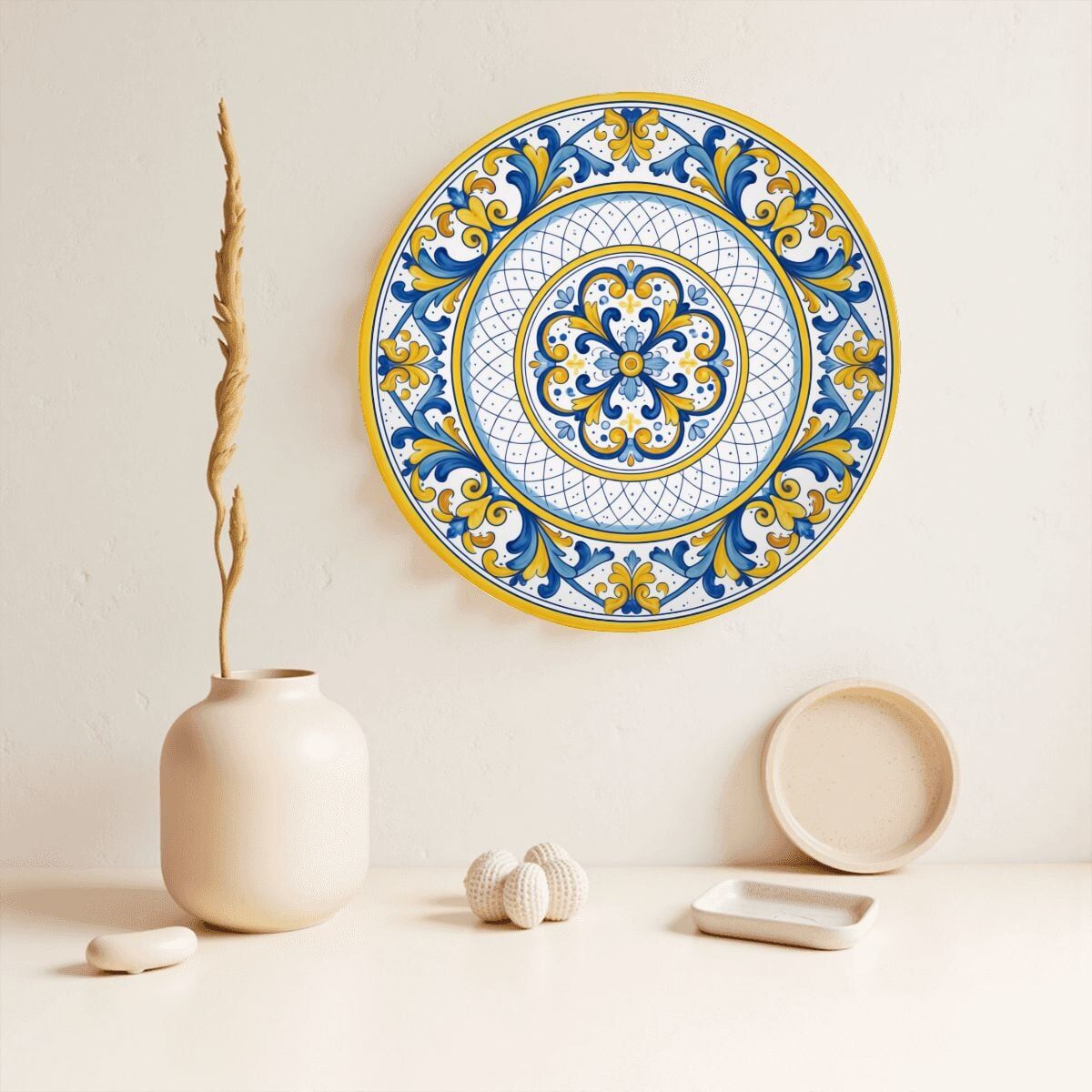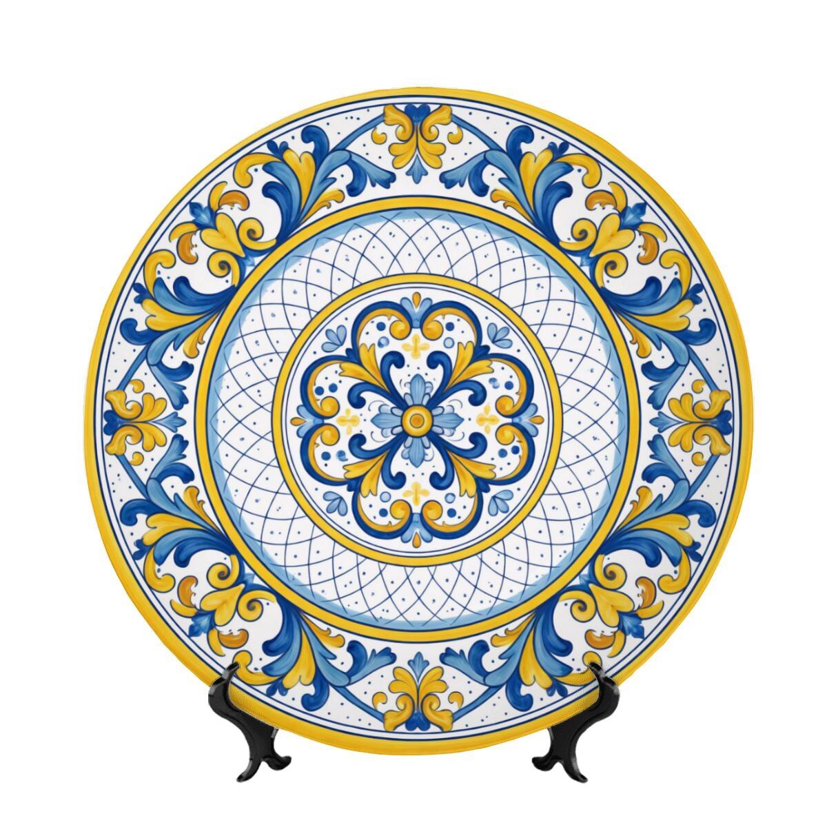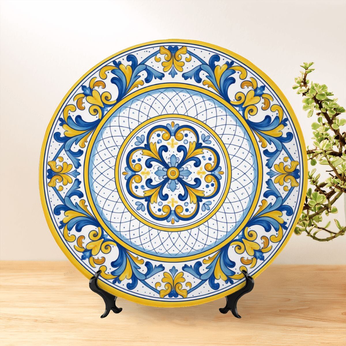 Tuscan Home Decor Inspired by Florence Renaissance Scroll Motif Decorative Plate Including Stand
