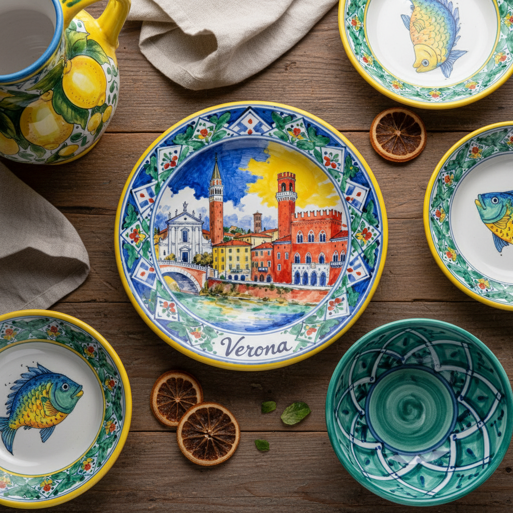 Verona Landmark Ceramic Decorative Plate, Italian Wall Decor, Cobalt Blue & Yellow Art