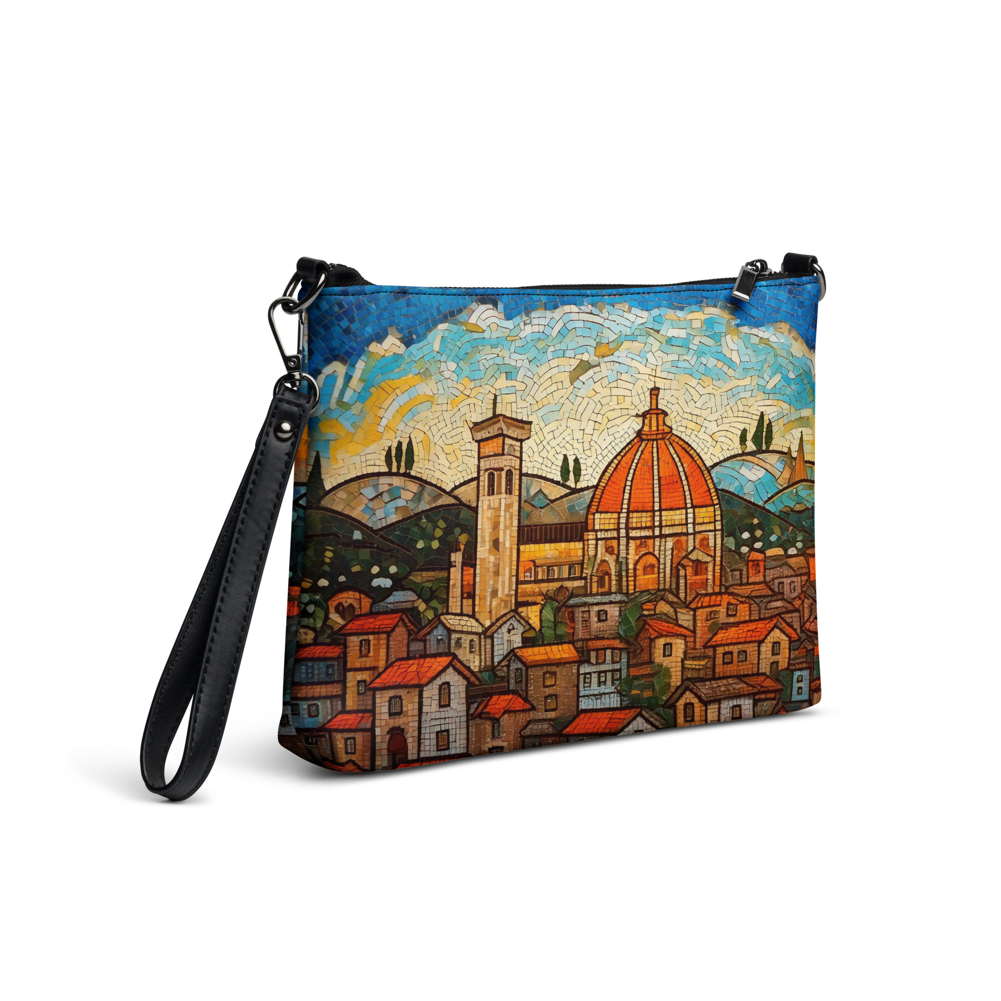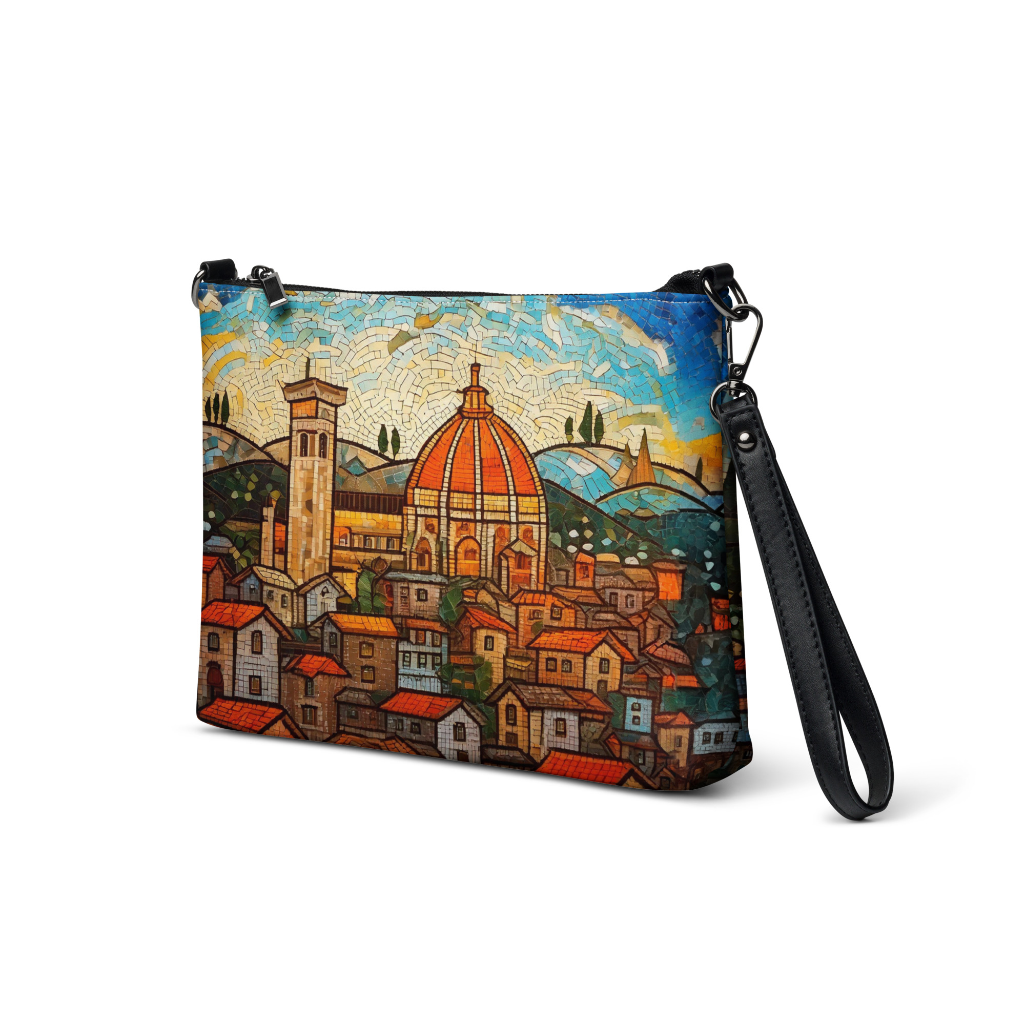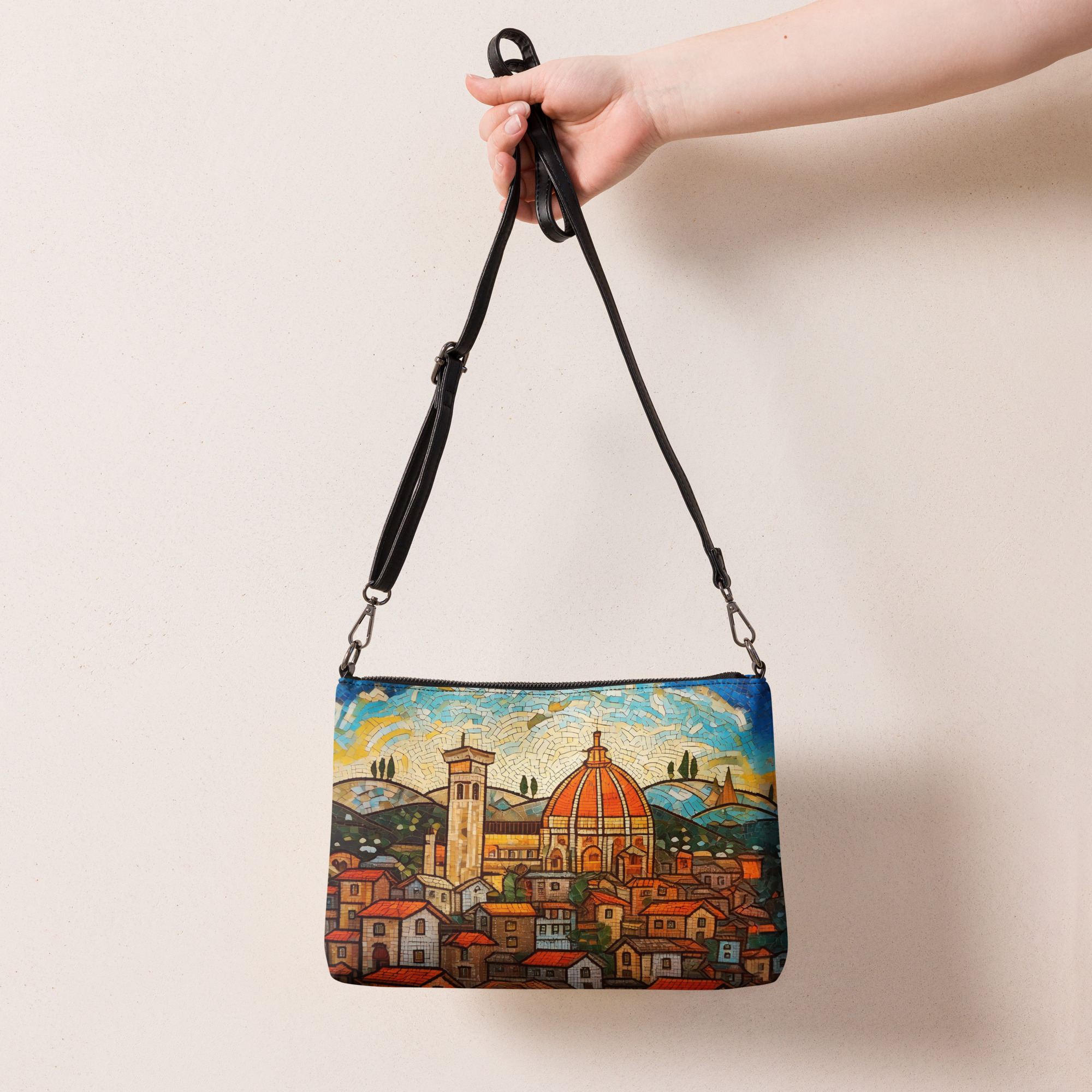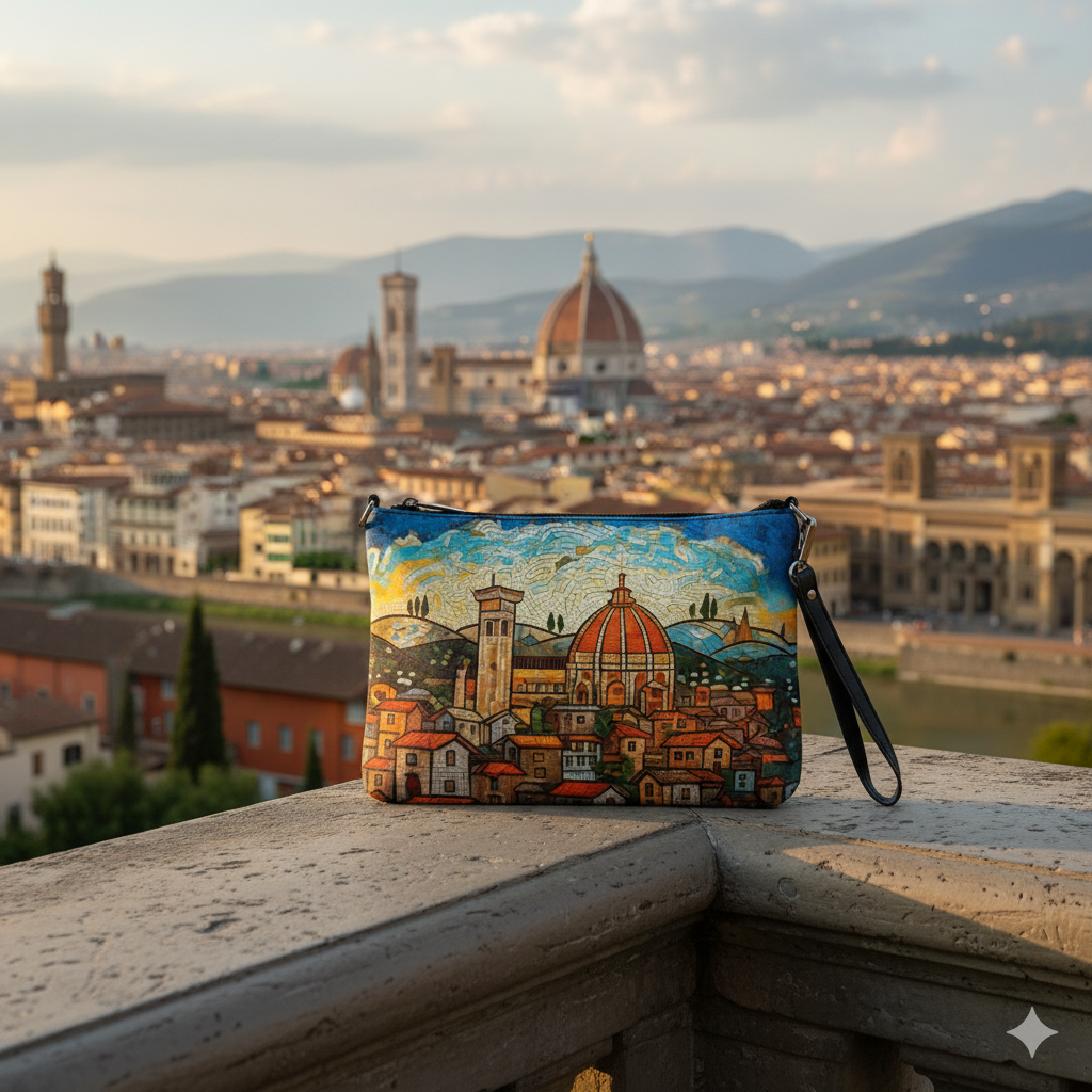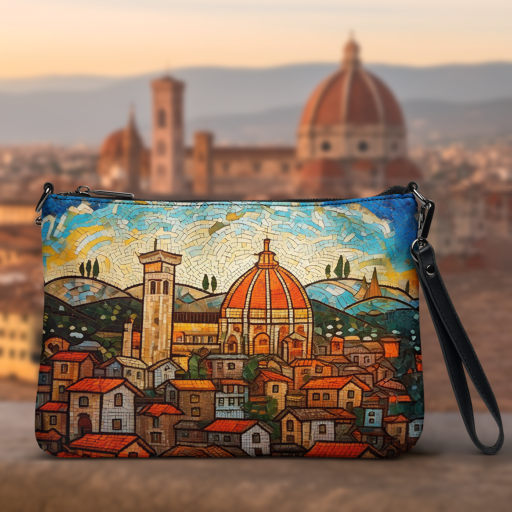 Vintage Florence Mosaic Crossbody Bag – Italian Cityscape Purse, Duomo Print Travel Handbag, Tuscany Souvenir Shoulder Bag